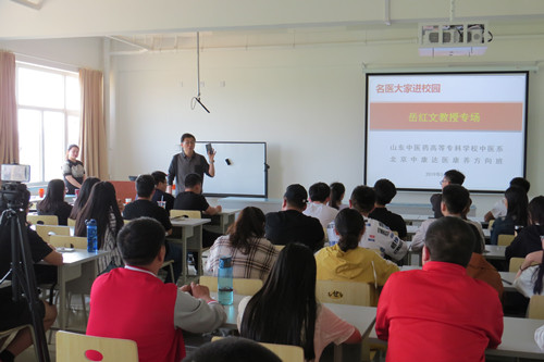 5月18日,中医系在三号实验实训楼503室举行名医大家进校园活动,北京阜外心血管病医院岳红文教授等四位知名专家应邀来校讲座。中医系副主任李春巧主持了讲座,中医系2017级北京中康达医康养方向班全体同学、中医系师生代表近100人参加了此次讲座。