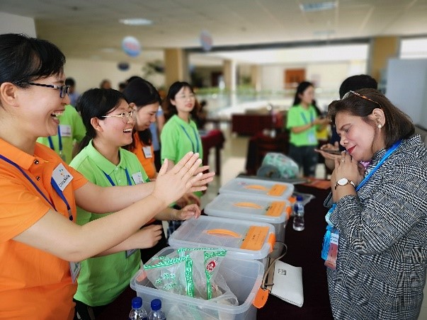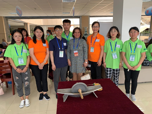 清香安神、芳香美颜、温中健脾、馨香醒神等各种功效的香囊琳琅满目,这是中医系健康管理专业的大学生志愿者,用两天的时间调配制作了三百多枚香囊,并细心搭配了精致的包装盒,被游人们带往五湖四海。菲律宾远东大学副校长Doctor Myrna博士对中医药及传统文化非常着迷,在现场将制作的香囊佩戴胸前,并与大家合影留念。