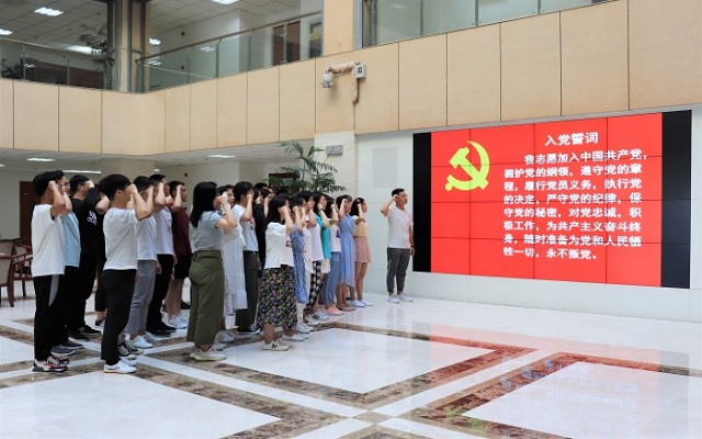 7月1日下午,中医系学工党支部组织全体学生预备党员在图书馆一楼大厅开展“不忘初心、牢记使命”主题宣誓活动。