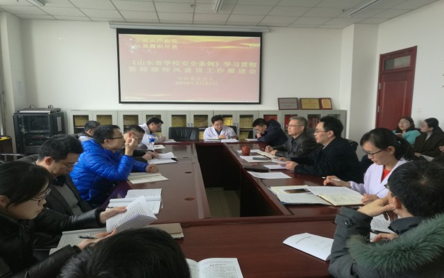 为把学校“制度落实年”推向深入,依靠制度管人管事,3月21日,中医系党总支在系会议室召开《山东省学校安全条例》学习贯彻暨师德师风建设工作推进会。会议由系党总支书记宫树华主持,系全体教师参加会议。