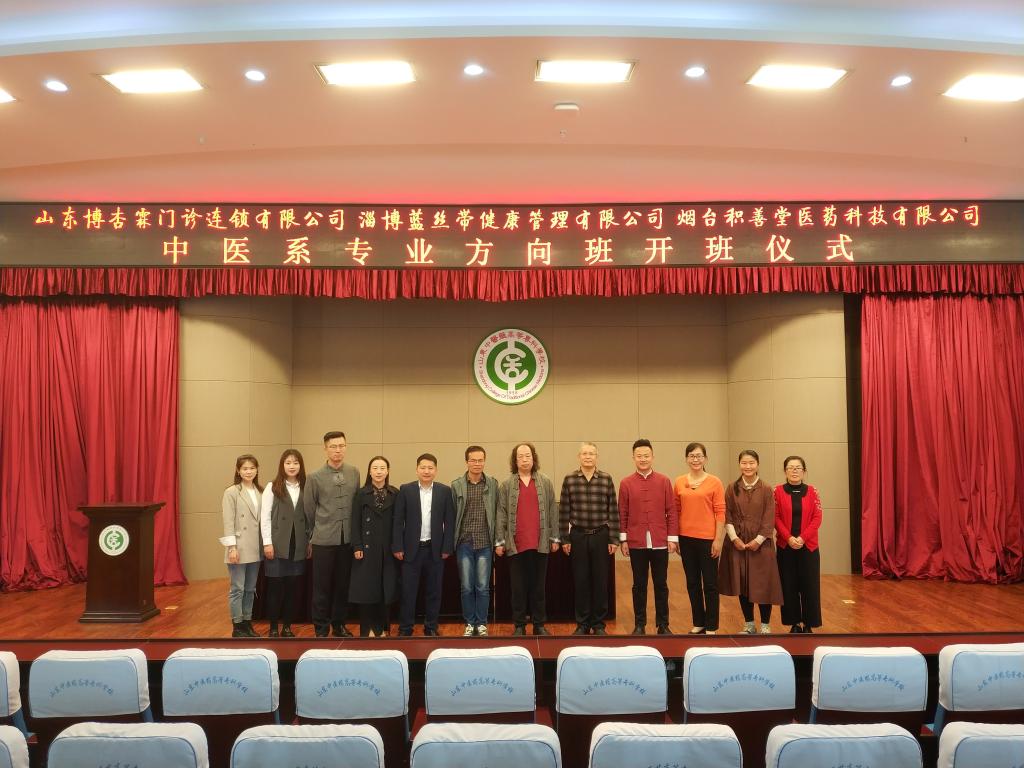 10月12日上午,中医系在综合楼学术报告厅举办济南博杏霖中医临床班、淄博蓝丝带产后调养班、中医传统班(积善堂冠名)2019级开班仪式。中医系主任徐传庚、山东博杏霖门诊连锁有限公司总经理杜航、淄博蓝丝带健康管理有限公司副总经理马玉双、烟台积善堂医药科技有限公司总经理张志强、方向班班主任及全体同学参加开班仪式。仪式由中医系副主任李春巧主持。