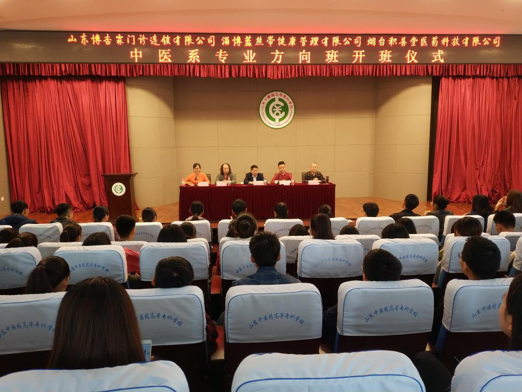 开班仪式上,各企业负责人分别就公司概况、行业状况和职业发展前景以及对于方向班的资源配置情况等做了详细的介绍。淄博蓝丝带健康管理有限公司总经理马玉双详细介绍了产后恢复4:2:4(中医理疗40%、科技恢复20%、营养指导40%)黄金比例模式,并指出在产后恢复市场领域中,理疗师及中医技术顾问仍存在较大的缺口,企业将会在产后恢复技术实操等方面对同学进行中医专业培训。烟台积善堂医药科技有限公司总经理张志强介绍并解释了“汉方聚”系列产品,强调食疗保健在健康管理中的重要地位和作用。山东博杏霖门诊连锁有限公司总经理杜航作为本校的毕业生,分享了自己的从业经历,并向同学们介绍了具有简便廉效等特点的中医外治技术,鼓励方向班的同学们以企业为平台,理论联系实践,逐步融会贯通。