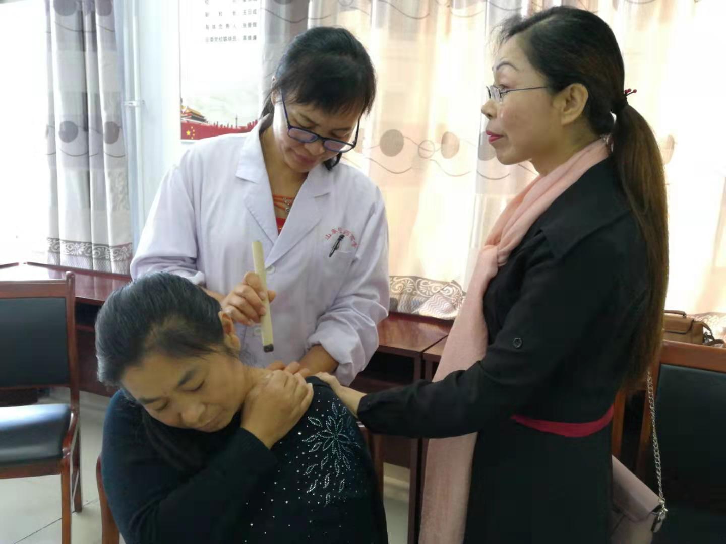 2019年10月18日,中医系中医博士专家团来到牟平区宁海街道办事处政府街社区开展义诊活动。