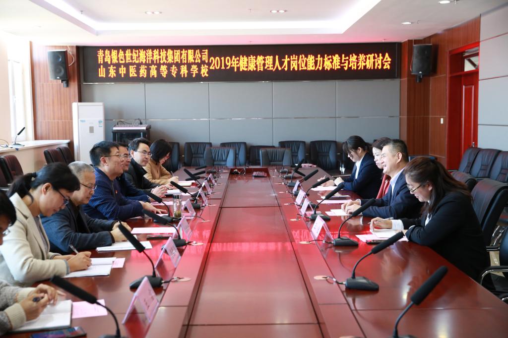 11月22日,青岛银色世纪海洋科技集团有限公司副总裁樊庆山、总裁助理陈静、招聘部经理王佳、招聘部主管张慧一行到校交流健康管理人才岗位能力标准与培养等相关内容。学校校长袁志勇、党委副书记战文翔、中医系主任徐传庚、中医系党总支书记宫树华及相关领导老师参加了研讨会。