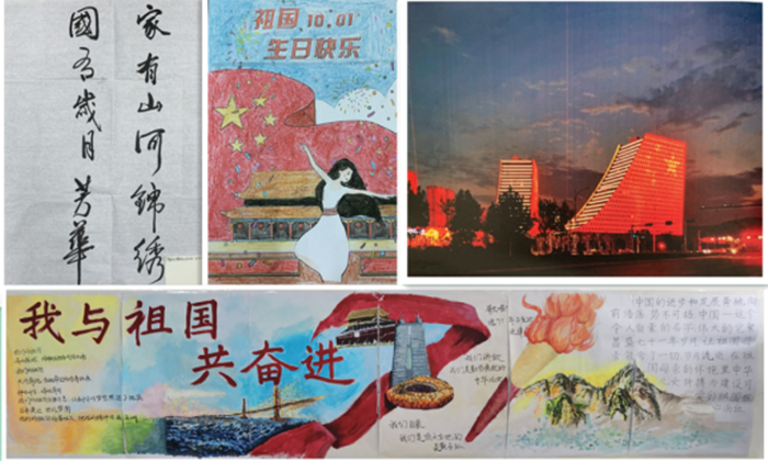 本次活动分三个板块进行。一是“为祖国歌唱”板块,以短视频的形式和同学、亲人、朋友等共唱《我和我的祖国》等爱国歌曲,彰显青年的蓬勃朝气,向祖国告白;二是“我与祖国共奋进”板块,以主题墙报、书法、绘画等形式,展现中国在历史长河中的特殊瞬间、平凡人物、壮丽风光、重大事件等,与祖国同呼吸、共命运;三是“带你看大美中国”板块,用镜头记录下国庆时节与国旗相伴的一场细雨、一片落叶、一座建筑,或是祖国最令学生感到自豪的成就和变化。