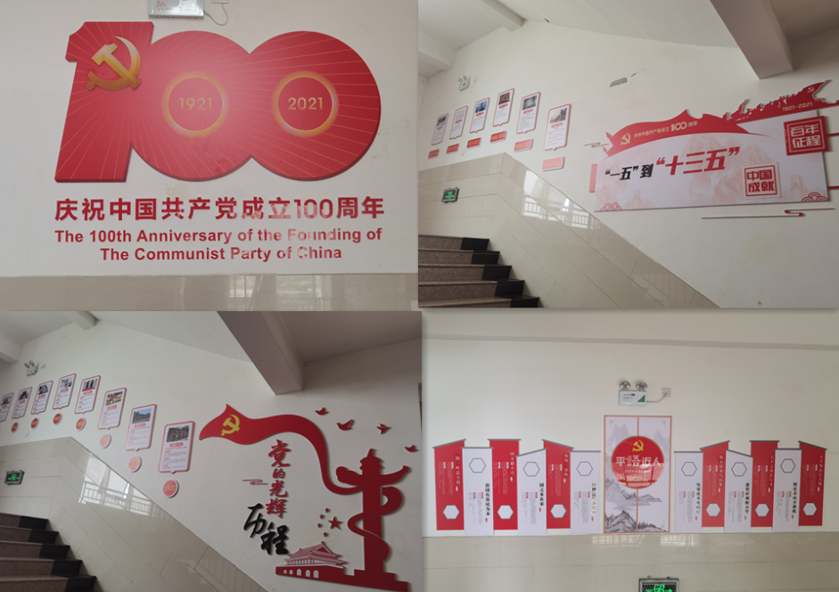三是“三室两堂一廊”线下党建文化阵地充分利用学校教室、寝室、办公室、教学第一课堂、课外第二课堂、走廊加强宣传教育,以图文形式展现了“党的光辉历程”“‘一五’到‘十三五’的中国成就”“中国共产党人的精神谱系”“平语近人”等主题内容。通过一幅幅照片、一段段文字,把党的发展历史与党建知识充分结合,凸显浓厚的新时代党建特色。党建文化阵地的建成,让党的声音能更好地在学校里传播,在全系营造“初心不改跟党走,立德树人争先锋”的浓厚氛围,对于引导党员进一步提高党性觉悟,争当时代先锋起到重要作用。