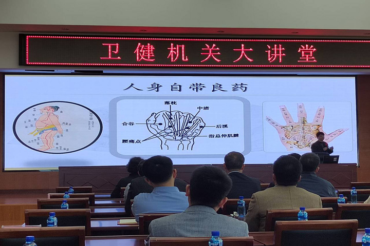 4月20日,我校健康管理专业负责人王雷教授受烟台市卫生健康委、市中医药管理局邀请在烟台市中心血站6楼学术报告厅举办“让中医重新融入生活”科普讲座。市卫健委百余名干部职工参加。