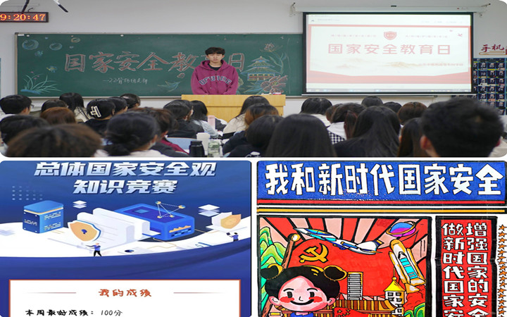 一是召开主题班会,厚植安全意识。中医系开展以总体国家安全观、全民国家安全教育等为主题的主题班会,通过讲授课程、开展宣讲、分组讨论等方式,教育广大学生认真践行总体国家安全观,自觉抵制危害国家安全的言论和行为,时刻牢记“国家安全、人人有责”,为维护国家安全贡献自己的力量。二是巩固理论知识,检验学习成果。中医系组织全体师生于3月22日至4月20日通过大众日报微信小程序、电脑客户端进行答题。题型分为单选题、多选题和判断题三种,内容涉及《中华人民共和国国家安全法》等相关法律法规、大学生安全行为与规范、安全常识及基本知识等。截至4月12日,全系共有2800余名师生参与线上答题,进一步增强了师生国家安全意识和法治意识。三是举办国家安全创意大赛,营造浓厚氛围。中医系于3月18日至3月31日面向全体师生开展了“国家安全宣传教育创意大赛”的作品征集活动。同学们踊跃参加,总计收到作品46件。参赛同学从不同角度对我们日常生活中存在的各种国家安全问题进行了理解和诠释。经评选,2021级中医养生保健班肖歌的作品《我和新时代国家安全》获得一等奖。
