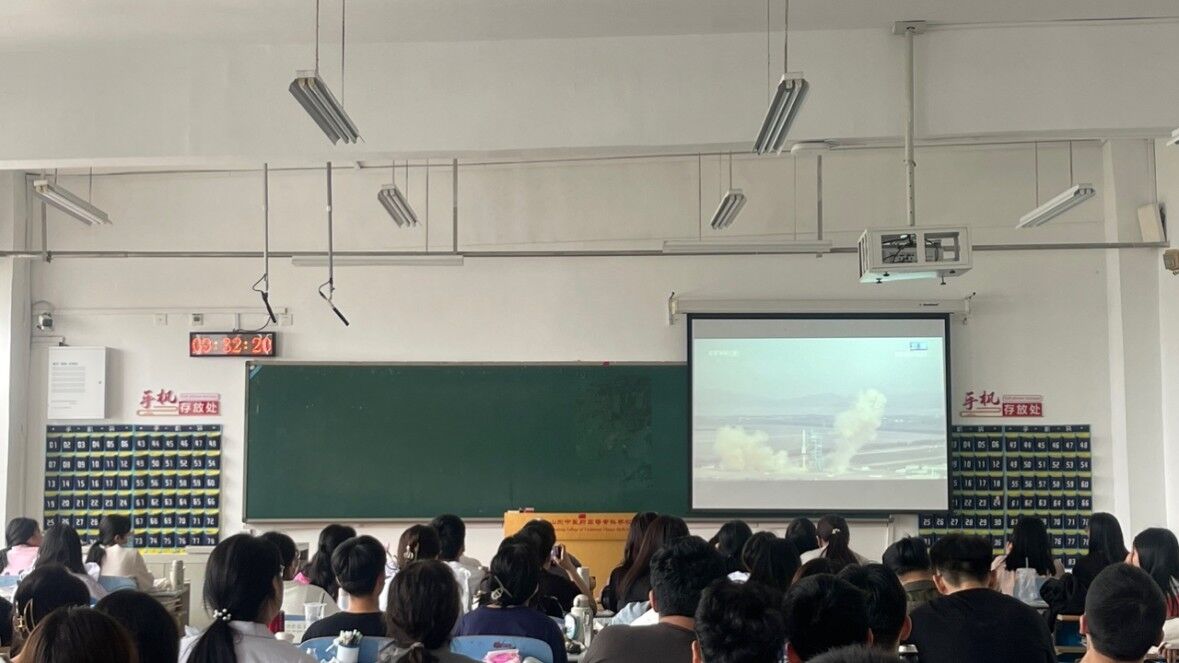 在整个观看过程中,同学们屏气凝神,生怕错过任何一个精彩画面。高大巍峨的发射塔、耸立云端的运载火箭、沉着冷静的航天员以及铿锵有力的发令声,都深深地吸引着同学们。