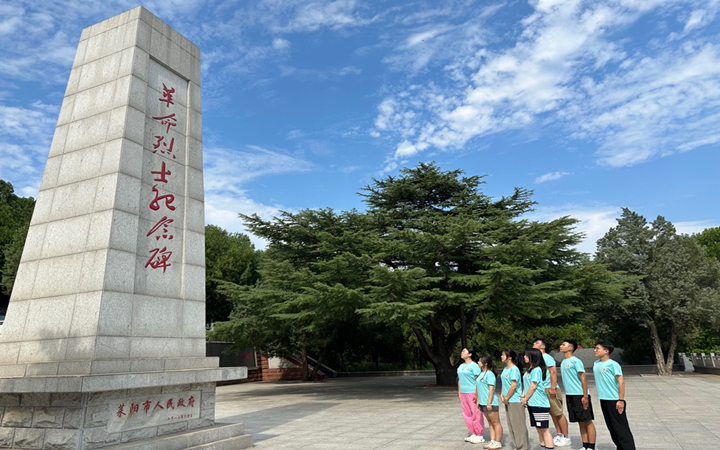 7月21日,志愿服务队全体成员来到莱阳红土崖革命烈士陵园。陵园内长眠的2750名革命烈士曾在战争中顽强抗敌,为国捐躯,历史的车轮从未风化他们的丰功伟绩,反而使他们的形象更加深刻,因为他们用生命勾勒了莱阳走向未来的方向。
