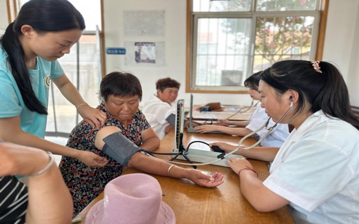 “青心医夏”志愿服务队发挥中医学专业优势,7月22日上午,义诊活动正式开始。志愿服务队成员有序分工为村民测量血压,进行日常生活常见疾病防治和预防“三高”的宣教,有效提高了村民对慢性疾病的认识。实实在在实现健康服务“零距离”,得到了村民们的一致好评。