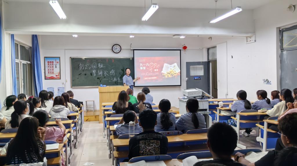 本次活动分两个方面进行,一是由各班召开主题教育班会,由宣讲员带领同学回顾“九一八”事变的全过程,辅导员通过多种方式引导同学们要用实际行动传承抗战精神;二是组织学生观看电影《国歌》,电影中一位位同仇敌忾的中华儿女,不惧艰难、不畏生死的坚毅形象,感染着每一位同学。