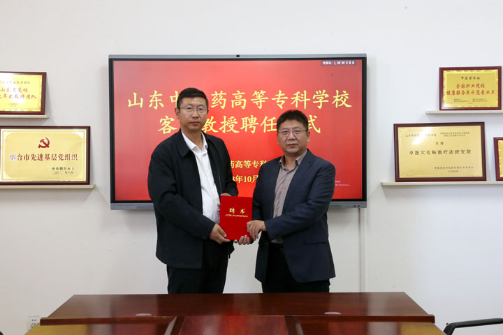 最后,杨春涛为张树剑教授颁发学校客座教授聘书。(中医系 图 汤誉沣/文 王群 王伟)