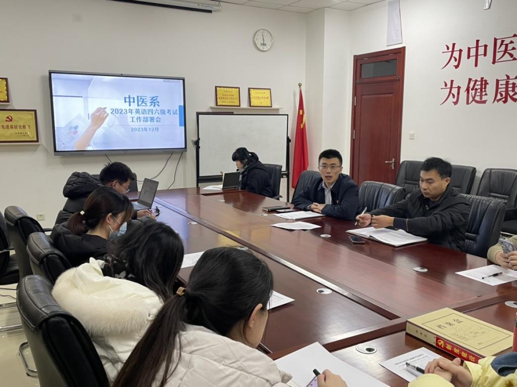 为保障2023年全国大学英语四六级考试在我校顺利进行,为广大考生提供良好的考试环境,12月14日下午,中医系组织召开2023年全国大学生英语四六级考试工作部署会议。会议由中医系党总支副书记于昕主持。