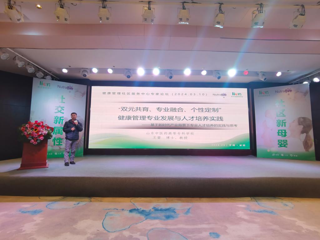 我校健康管理专业负责人王雷博士作为高校代表受邀参会,并在论坛上作典型发言。王雷博士分享了我校健康管理专业实施校企合作,深化产教融合,开展专业人才培养与产业链无缝对接的实践经验。中国医药物资协会大众健康委员会袁发俊秘书长对我校的专业建设理念与做法给予高度认可。袁秘书长提出,要培养真正适应新时代岗位需求的健康管理专业人才,实现健康产业发展与转型升级,必须要实施“人才链、教育链、创新链、产业链”融合发展,开展多元化校企合作。