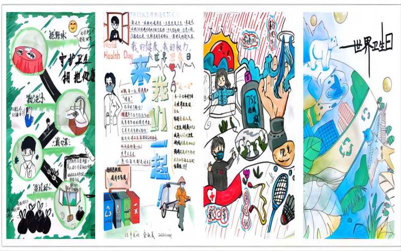 在这次活动中,同学们积极参与,共同设计了一系列创意海报,海报内容涵盖了健康饮食、适度运动、心理调节等多个方面,通过生动的图文结合,生动展现了健康生活的重要性和方式。本次活动共收到作品50余幅,2023级中医学03班张琛、2023级中医学12班刘玉娜和2023级中医学12班宋培玉获得一等奖。