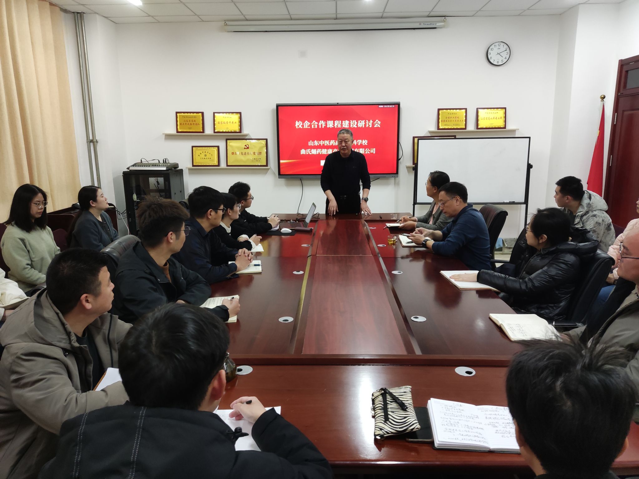 为更好地传承曲氏熥药这一中医特色外治疗法,进一步提高我校学生的临床技能,12月9日,曲氏熥药校企合作课程建设研讨会在中医系会议室举行。曲氏熥药研究院曲宝仁院长、中医系主任李春巧、曲氏熥药及我校部分教师出席本次研讨会。