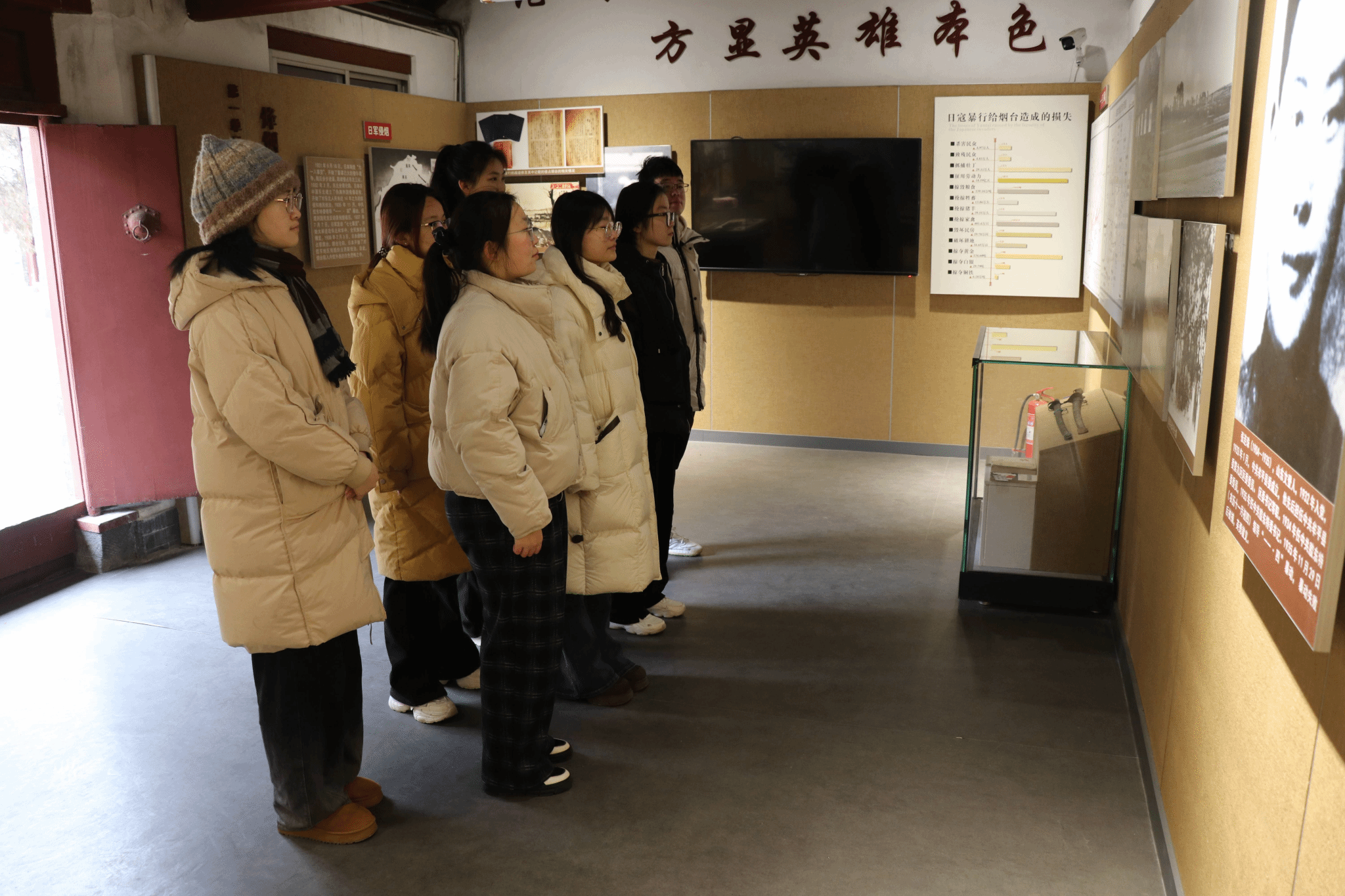 雷神庙战斗打响了胶东抗战的第一枪,在胶东抗战史中具有里程碑式意义。在一幅幅泛黄的历史照片、一件件斑驳的革命文物前,大家驻足凝视,仿佛穿越时空,回到了硝烟弥漫、战火纷飞的年代。青年学子们认真聆听了理琪等革命先烈在胶东地区开展抗日救亡运动的历史背景及战斗经过,深刻体会到革命先辈们为了民族独立和人民解放不惜抛头颅、洒热血的伟大牺牲精神。