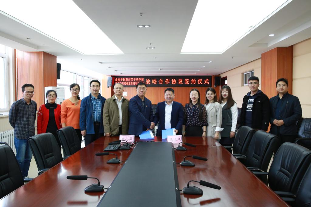 10月11日、15日,在学校15楼会议室举行了校企合作签约仪式。校长袁志勇分别与广州青花瓷健康管理有限公司董事长魏艳霞、山东博杏霖中医门诊连锁有限公司总经理杜航、淄博蓝丝带健康管理有限公司副总经理马玉双、烟台积善堂医药科技有限公司董事长张志强等4家健康服务企业负责人进行签约。中医系主任徐传庚、党总支书记宫树华、副主任李春巧、校企合作方向班班主任以及企业部分人员参加签约仪式。签约仪式由中医系党总支书记宫树华主持。